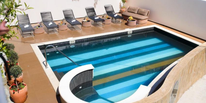 Lítil óupphituð sundlaug og lítil sólbaðsaðstaða er á hótelinu.