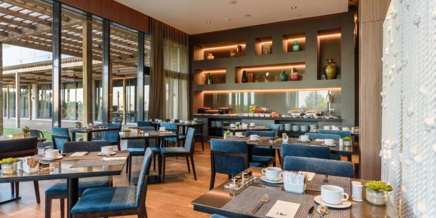 Veitingastaður er á hótelinu og í boði er að bóka gistingu með morgunverð eða hálfu fæði.
