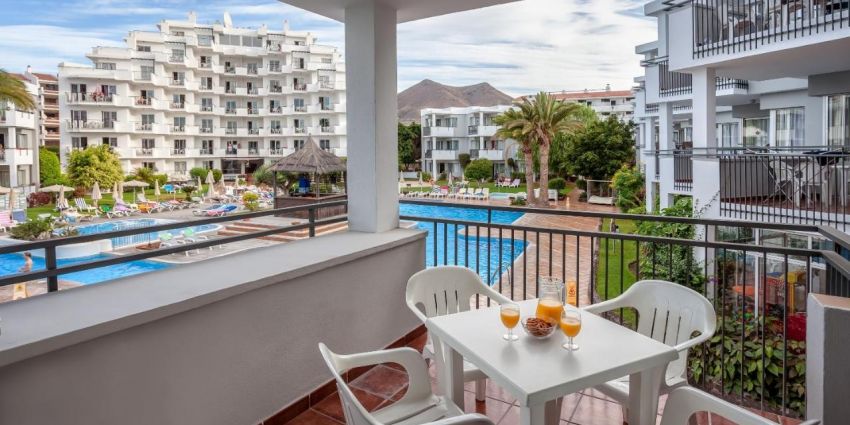 Apartment Suite, 45 fm, staðsettar á efstu hæð hótelsins með 20 fm verönd með útsýni út í garð og Los Cristianos.